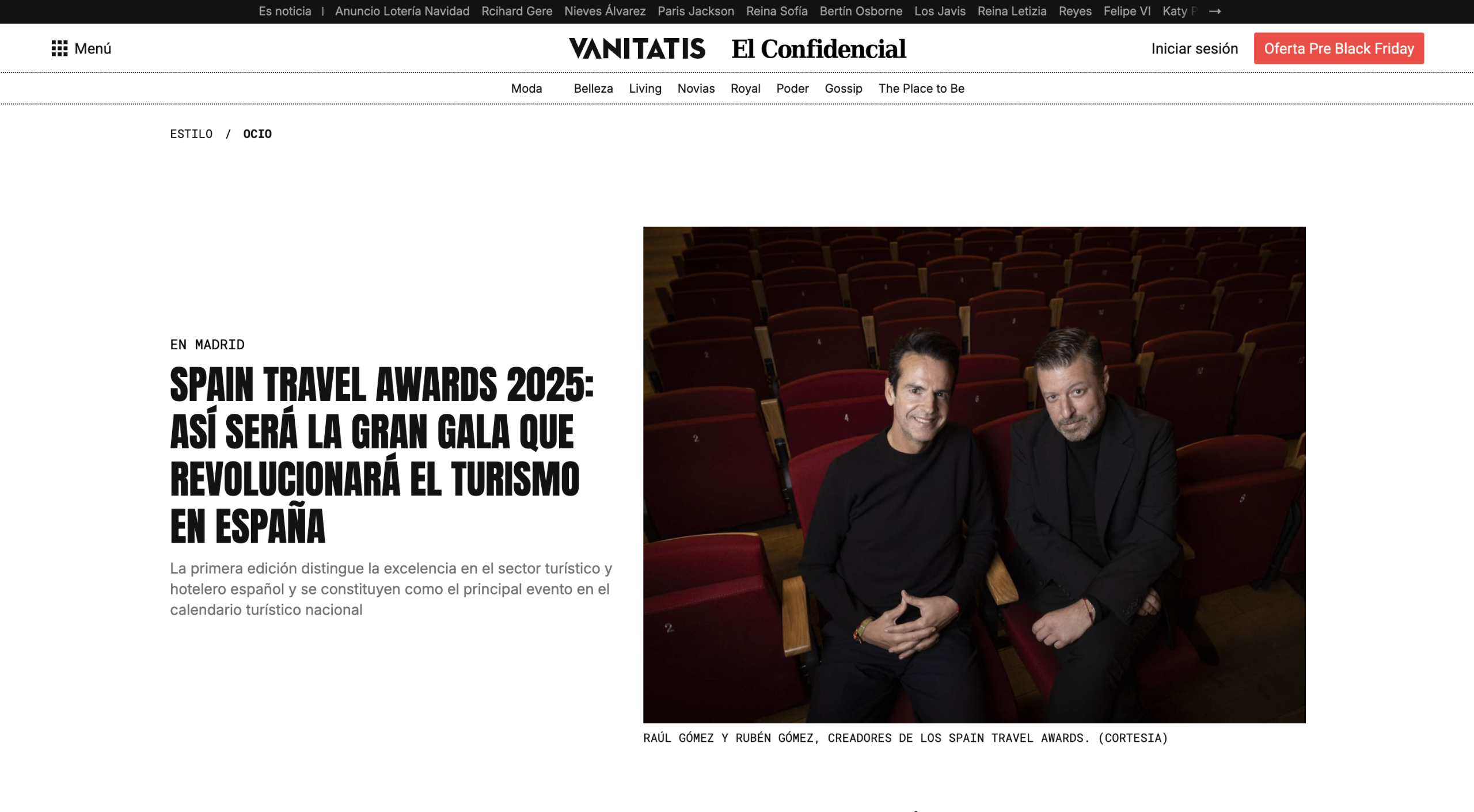 Los Spain Travel Awards se presentan como una auténtica revolución en el turismo español: una gala que pretende erigirse como el sello de excelencia del sector, destinada a premiar la innovación, la calidad y el compromiso de destinos, empresas y profesionales de la industria. El evento inaugural tendrá lugar el 1 de diciembre de 2025 en el emblemático Teatro Albéniz del hotel UMUSIC Hotel Madrid en Madrid, con el respaldo del Ayuntamiento de Madrid y otros organismos clave del turismo. La iniciativa ha sido impulsada por los comunicadores y organizadores de eventos Raúl Gómez y Rubén Gómez, quienes ponen sobre la mesa más de 25 años de experiencia para dar forma a este nuevo referente en el calendario turístico. Entre sus objetivos figuran distinguir no solo al turismo tradicional, sino también a experiencias emergentes, sostenibles y digitales que reflejen la evolución del sector en España.